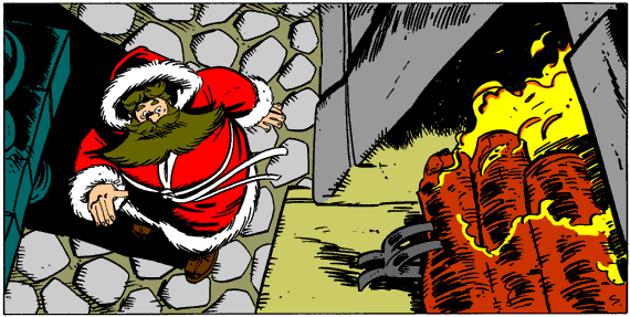 In the great sea to the west of Lycia, the sun sank in a panoply of purple and gold. It was a magnificent sight, especially so from the mountaintop above Myra -- but Bishop Nikola kept his eyes on the fortress. He had arrived some fifteen minutes earlier, edging as close as he dared without allowing himself to be seen from the tower. Twice since then, he had spotted the guards on the balustrade, but he himself remained invisible behind a pile of toppled boulders, eating his meat and fruit. It was colder than ever at this altitude, and grew colder still when the sun vanished altogether. A plume of black smoke billowed from the fortress chimney, to be ripped apart immediately by the increasing winds. Bishop Nikola had decided on the time that he would make his move, and he stuck to his decision even though his clothes could not keep him warm. He crouched, shivering but otherwise unmoving, until high above the highest peak, the first star of night appeared. Then Nikola moved forward. He was a heavy man, but he was graceful. He could slide through narrow openings smaller men might balk at entering. He seemed to have an instinct for when to move and when to hold still. And he reached the fortress without being seen. The gate was exactly where it had been shown in the picture. So was the stone he needed to press. It was a long stretch for the bishop, but he made it: the gate swung open. There was no outcry. He slipped quickly into the courtyard's shadows, and pulled the gate closed behind. There was sound involved, and it seemed loud in his ears, but evidently the sound of the wind on the balustrade kept the guards from hearing it. Gerondimar's guards relied on fear of the bandit chieftain and the hidden means of entry more than their own vigilance. But he had no illusions about how vulnerable he was, inside the tower. He ran across the open court, hugging the shadows, and entered the far doorway. Here was the bandits' main chamber. A heavy wooden table littered with half-eaten food split it down the middle, and a well-laid fire roared in the huge fireplace facing the door. It came to Nikola that he would be outlined in the doorway by the firelight, should anyone look that way, and he almost jumped inside. There was another door across the room, leading deeper into the fortress. He began to search for the treasure trove, and he began to pray. First, he examined every inch of the four walls, from the flooring to the highest point he could reach, in hopes that Gerondimar had a mind similar to his own. When he was certain that that wasn't the case (for which, he had to admit, he was grateful), he dropped to his hands and knees and crawled around the floor, searching for a loose flagstone. He found nothing, and too much time passed. He slipped carefully back to the courtyard doorway and stepped quickly outside, to stand in the night-shadows and listen. High above, the guards had ceased their patrolling and were swapping jokes about Greeks. Reassured, Nikola returned to the room and went on through to the next one, which turned out to be the kitchen. A greasy stove yielded nothing, a foul-smelling larder yielded nothing, a moldy grain-bin yielded nothing. Again the walls and floor were examined; again he was denied. He went to the next room, a barracks. He doubted immediately that anything could be hidden here, where the bandits spent their off-hours, but it had to be searched. He found nothing. Now he was becoming very concerned. He hadn't expected this quest to be easy, but he had hoped a reasonably intelligent and determined man with the spirit of the Lord on his side could succeed at it. His ease of entry had led him to think that fear was his biggest obstacle, and not the ingenuity of the bandit-king. But two hours had passed since that entry, and he still had no idea where the secret room could be. He walked back to the main room. This, too, looked to be constantly in use, with the leftover food and the crackling fire Fire? "There's no one here now," murmured Nikola, eyes widening. "The guards are atop the walls. So why is the fire burning??" He ran toward the table and grabbed the largest knives he could find. He ran toward the hearth and began to pry the flaming logs out onto the stone floor. And all the time he was thinking furiously, The fire is burning to make certain no one looks in this fireplace while Gerondimar is gone! Even with the logs removed, the hearth was hot, but Nikola hunched his shoulders inside his robes so his sleeves hung over his hands, protecting them as he pushed on the hearth's back wall. It swung open easily, to reveal a room filled with glorious treasures. Diamonds, rubies, coronets, and heaps of gleaming coins filled every corner. He had never seen or even dreamed of anything like it; it must have been the contents of hundreds of caravans. But on top of the pile was his bag of gold, and that bag was all he took. Now he couldn't escape this fortress fast enough. The hidden door, still hot, would be harder to pull closed than to push open, so he left it open as he ran across the main chamber and out into the chill darkness. Above him a guard laughed and whooped, "Well, one time in Cadyanda -- " Nikola made certain to stay where the owner of that voice couldn't see him as he made his way to the gate, and waited only momentarily, for another burst of laughter, before opening it. Outside, the three-quarter moon was just rising, drowning the tumbled boulders in gray-black shadows. He slipped through them like a fish running rapids, and there was his horse, right where had left it. Just then, however, he heard other riders approaching from deeper in the mountains. "Not a minute to spare!" he whispered fervently, and prodded his horse down the narrow path. But no more than two minutes later, he heard shouts of outrage and fury from behind him. He spurred his horse to greater speed, but the animal had its eyes on the drop to the valley below. It clattered forward as quick