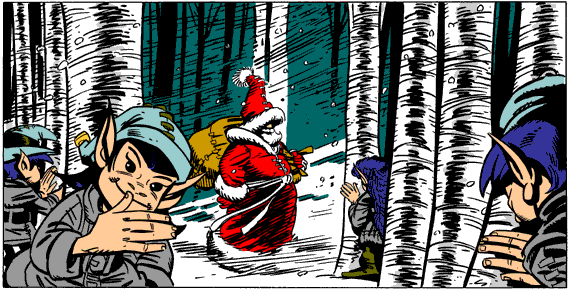 Rustle stood outside Nick's workshop, beneath the Northern Lights -- a solitary figure on the most barren of landscapes. He did not mind the cold or the dark the way an ordinary tree would have -- not with the magic still in him. But he minded the absolute lack of companionship. Nothing grew here. Behind him he could hear the laughter of the elves, carried out into the six-month darkness like the buttery, warm light through the windows. Perhaps for his benefit, the hillock hadn't closed down again to hide Santa's workshop. But nothing from that house touched him, any more than the light from the brilliant stars or the undulating aurora overhead. Around him he could hear the arctic wind blowing for a thousand empty miles And then he heard the steady crunch of feet crossing ice. Nick came into his view, smiling his constant smile. He nodded toward the landscape. "It is quite a change from Lycia, isn't it, Rustle? No horses, no bandits -- Gerondimar reformed after you left, you know. I tried my best to help him see the error of his ways, and I was fortunate enough to have some success. But I'm sure you're wondering how I came to this place " Rustle was too polite to say that he was only thinking about himself now. But Nick didn't seem to notice. "After you left me, I kept the bell you gave me hidden for a long time -- as normal men measure time. I was still but a simple priest; I served my Lord, and didn't seek to tempt His wrath by abusing such awesome power. So I went on as I'd begun, helping those in need, in secret. And as the village prospered, the money I gave to people started to come back to me, in the form of offerings at the church. I was able to increase the size and frequency of my gifts, and that seemed enough to me. What I didn't realize was, that sort of thing would attract outside attention. "The ships that put in at Myra on their way across the empire carried the tale of the 'blessèd village' everywhere. Now, this was in the time of the emperor Diocletian, a pagan, who wanted to undo all the progress the church had made since its beginnings. One day a war ship came to Myra, and it came for me. "No one knew for certain that I was the secret giver, but the gifts invariably went to those who needed Christian charity. I was suspected, and it was enough. I was taken away to prison, so suddenly that I had no chance to reach the bell. I was kept in a small, dark dungeon -- and the gift-giving in Myra stopped. With that sort of confirmation, I was sentenced to remain in that cell for the rest of my life." "Oh," whispered Rustle, caught up in the story in spite of himself. "You may be certain that no day went by that I didn't think of the bell, my friend. I'd had the ability to realize my dreams in my hands, and I'd failed to use it. It became very clear to me that prolonging my life, if such a life was a good life, could not be against God's will. Quite the contrary -- God had not sent you to me so that I might die in a cell. You may believe that I prayed to the Lord for a chance to rectify my conduct. "Ten years after I was imprisoned by Diocletian, he was replaced on the throne by Constantine, an emperor who once again believed in the God I worshipped. Constantine had me released; I went at once to Myra. The town had changed -- it had suffered in its way as I had in mine, and the spirit of optimism and hope was gone -- but the church still stood. Unused it was, but neither had anyone uncovered its secrets. "The bell was where I had left it. "On a winter's night in the year 306 -- as cold a night as we ever knew on the Mediterranean -- I rang the bell and became as you see me now. Well, in truth, my captivity had made me much thinner, but my hair was already white, and other than regaining my former figure, I haven't changed in the slightest in the seventeen centuries since. "I left Lycia then. Too much was known of me there. I traveled away from Rome, to the east around the Black Sea, and north, into what we now call Russia. I found a village that the faith had not yet reached, and settled in to begin my new life. I ministered to the souls and the needs of the people there for over thirty years, until they began to ask themselves why I had not seemed to age. At that point I moved onward, again to the north and east, and repeated the process. Over a total of four hundred years I moved farther and farther toward the hinterlands of Siberia, and after a time I could no longer disguise myself as a simple priest. Besides my lack of aging, I was unaffected by the freezing winters, just like you. I became known to the people as Dedt Moroz." Rustle, who understood Old Russian as instinctively as he understood Old Lycian, knew that meant "Father Ice." "The church naturally believed that I, Nikola, had died centuries before. The stories of my gifts had lived on, however, and eventually I was declared a saint -- Saint Nicholas! A man who is blessed by God." He turned to look back at the half-hidden house full of laughter and light. "I suppose I am," he murmured, and Rustle was surprised to hear his rich voice still touched by a trace of awe. "They called me the patron saint of children, you know -- because of the way I'd helped the three girls. And because of all the time I spent in Russia, I'm the patron saint of that country, too," Nick continued reminiscently. "It was there that I first encountered my elves. You see, as I walked onward through that glorious wilderness, I was often inspired by the wonders of Nature before me. As I came to learn, they were also inspired by me. Chiss and Mymla have explained that elves are the usually invisible beings who guide the natural elements. As my reputation spread, it reached their ears, and they watched me for close to two centuries. Satisfying themselves that I was not like other people, they finally appeared before me and offered themselves to my service. At the time, I had no need of them, and after passing a delightful six months among them, I