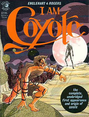 It began as a 60-page graphic album, but ended up being drawn in seven chapters by Marshall Rogers, and published as a serial in Dean and Jan Mullaney's ECLIPSE MAGAZINE, with a total of 67 pages. It was eventually collected in its original form in the album I AM COYOTE, and then again in COYOTE COLLECTION #1. The character then moved to his own series in the Epic line at Marvel. |