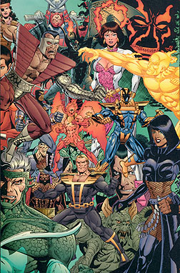 That inexplicable blast from the moon changed a Latina business tycoon - two All-American art students - a baker - a kid from the hood - a pleasure droid - and an ethereal princess from a long-hidden civilization in the clouds. Five of them were normal people, all were strangers to each other, and now strange to themselves. Starting at ground zero in San Francisco, they set out to chart the changes in their brand new Ultraverse. (It was such a powerful idea that J. Michael Straczynski later borrowed it for Rising Stars.) The wonderful thing about the Ultraverse was that it was a collaborative effort. Mike Barr, Steve Gerber, James Hudnall, Gerard Jones, James Robinson, Len Strazewski, and I (plus Larry Niven for a time) all agreed from the outset to share the playground and join in each other's games. Thus it was that STRANGERS #4 was planned as a crossover with HARDCASE #4 from the beginning, and STRANGERS #7 crossed over with PROTOTYPE as part of BREAKTHRU. But that was what made Malibu unique to the public and a family for us Founding Fathers. My artist for most of the run was Rick Hoberg, one of the most professional artists ever. The Strangers starred in a two-part episode of the UltraForce animated series as the pilot to their own series, but Marvel's buying Malibu nixed it. |