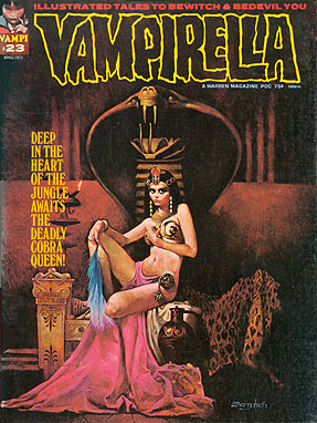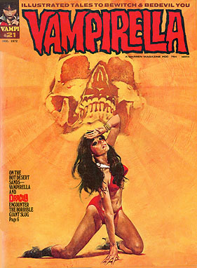 | Eleven issues after making my debut in comics as an art assistant (VAMPI 10), I got the gig writing Miss Rella. A theme through much of this gallery is my coming onto a book after Archie Goodwin had started it off (THE HULK, LUKE CAGE, JUSTICE). In this case, Archie had written a series I really loved - then T. Casey Brennan got it before I did - but it was Archie's ambiance that I tried to emulate. In fact, since I was by now employed at Marvel, I had to use a pseudonym at Warren, and chose "Chad Archer," meaning "Shadowing Archie."